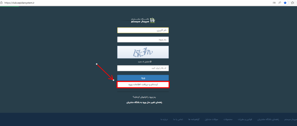 - در صفحه اصلی باشگاه مشتریان روی گزینه” ثبت نام و دریافت اطلاعات ورود” کلیک کنید.